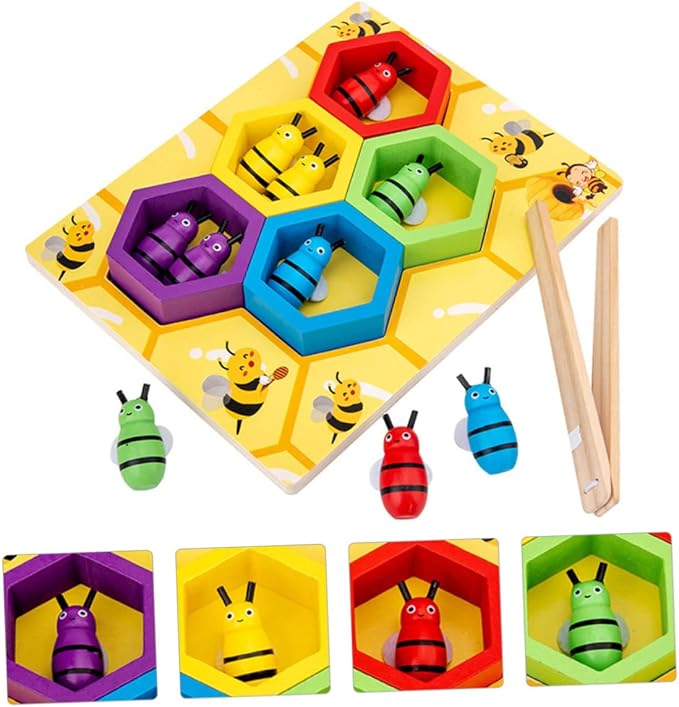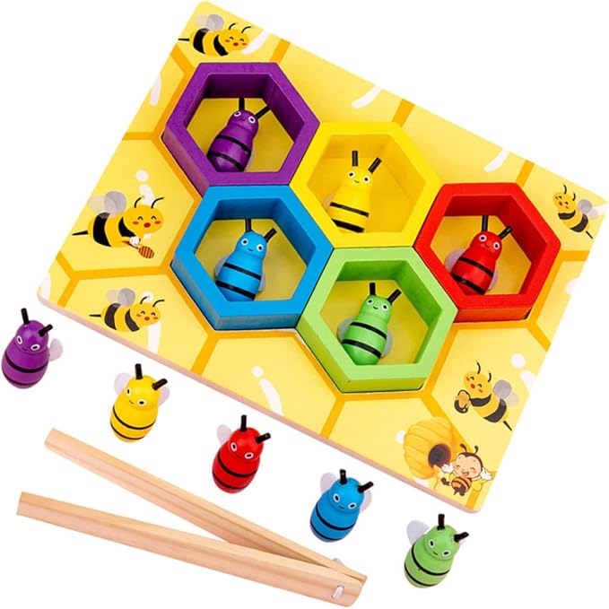 La otra habilidad fomentada en este juego es la habilidad motriz fina, ya que los niños deben manipular pinzas para tomar las abejitas y clasificar. Esto ayuda a desarrollar su tono y fuerza muscular, la precisión y la coordinación, habilidades escánciales de preparación para la iniciación a la lectoescritura.